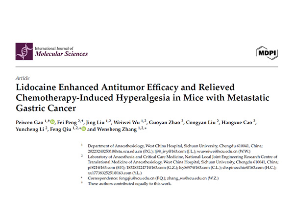 利多卡因是一種局部麻醉藥,通過阻斷神經細胞上的鈉離子通道,以可逆且非成癮的方式阻斷疼痛信號傳導。它傳統上用于緩解腫瘤切除術后的切口疼痛,且近年來被發現具有廣譜抗腫瘤潛力。當作為化療補充藥物時,利多卡因可顯著增強抗腫瘤效果。在治療腹膜轉移癌的關鍵手段——腹腔內化療中,常引發腹膜炎癥和腹痛,這不僅限制了